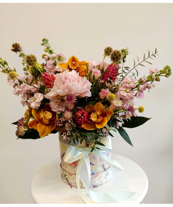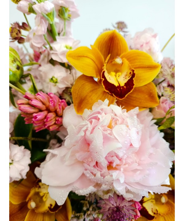 Comanda online si surprinde-o cu acest aranjament unic, deosebit si elegant cu flori atent alese in culori deosebite pentru un look vintage. Daca doresti sa-i faci o surpriza dar stii ca este o fire mai conservatoare alege acest aranjament de flori in culori vintage dar intr-o abordare moderna.